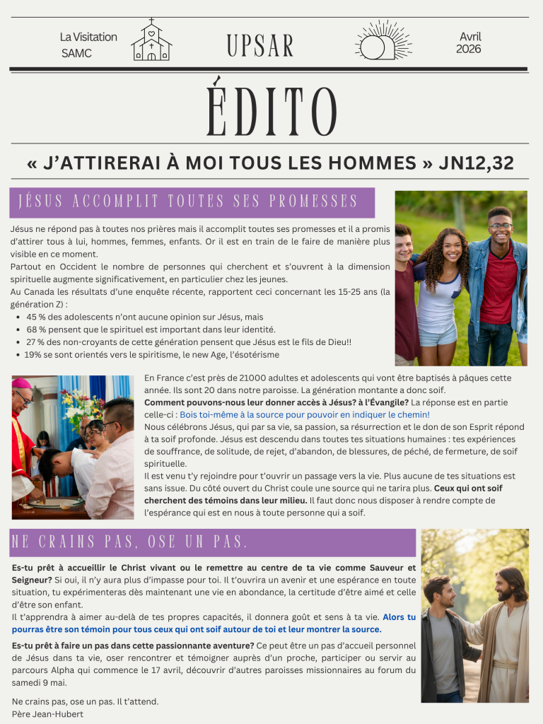 le samedi 9 mai à St Ambroise de Kildare, 9h-16h https://paroissesenmission.org/
